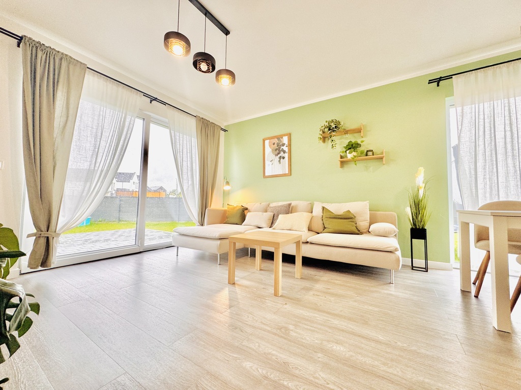 Dom jest bardzo nasłoneczniony, z widokiem na ogródek i zabudowę jednorodzinną.