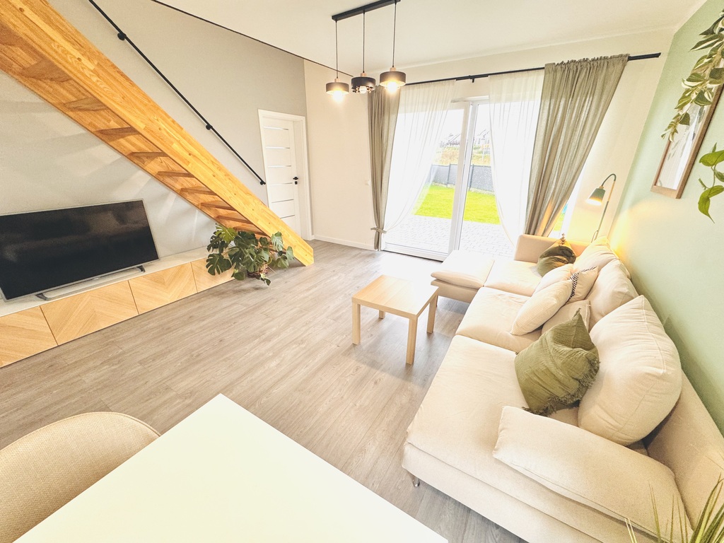 Ogromnym atutem jest cisza i spokój ze względu na brak sąsiadów od strony ogródka i tarasu budynku.