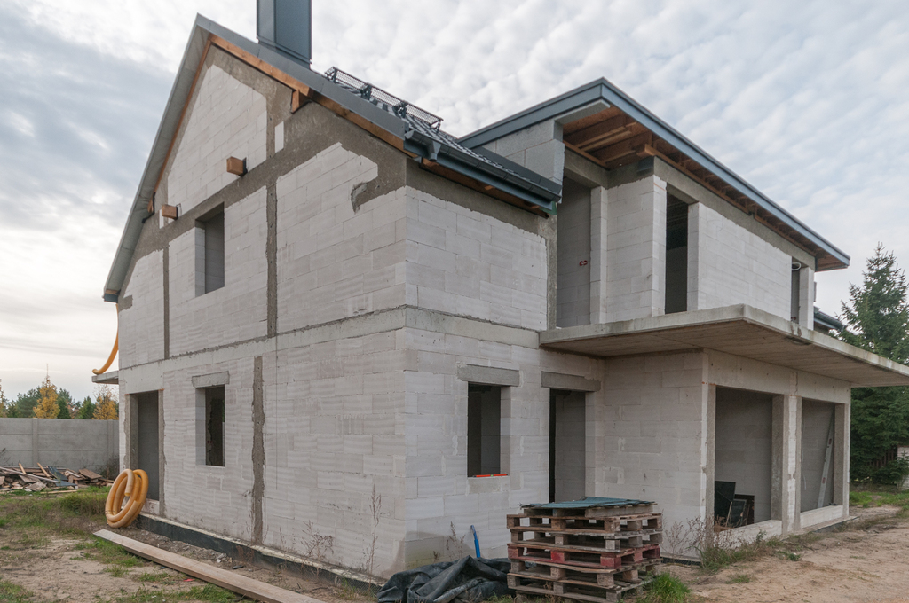 bloczki silikatowe, żelbetowe stropy, solidny dach