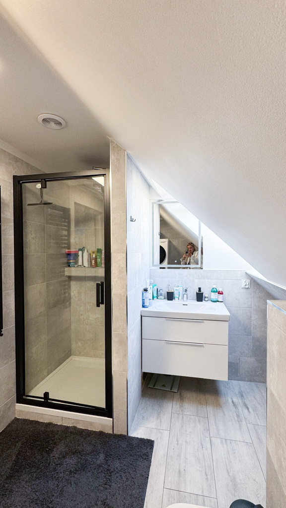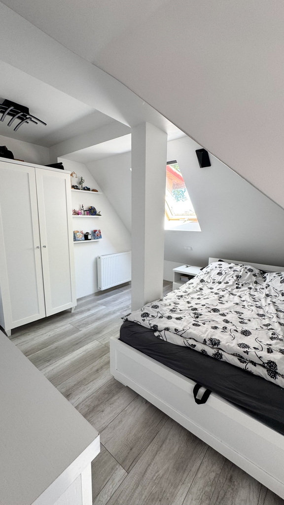 • Lub domu 2-poziomowego z indywidualną klatką schodową, z 6 pokojami, 3 łazienkami i tarasem.