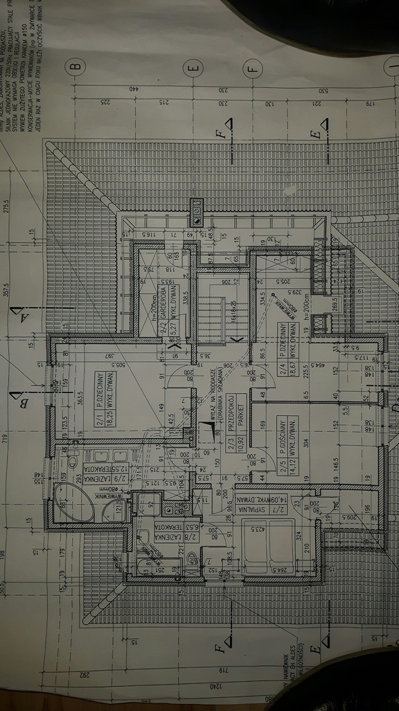 Więźba dachowa przykryta dachówką ceramiczną. Okna mahoniowe z elektrycznymi roletami antywłamaniowymi, sterowane zegarem (dwa obiegi), parapety wewnętrzne z drewna mahoniowego gr.6cm.