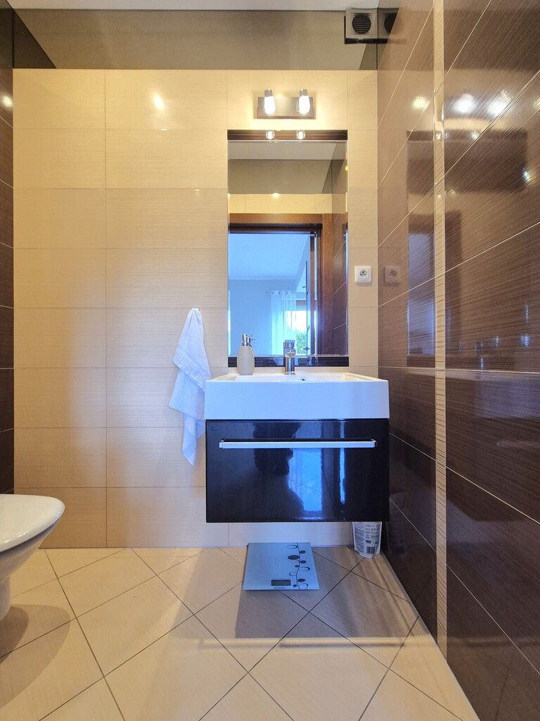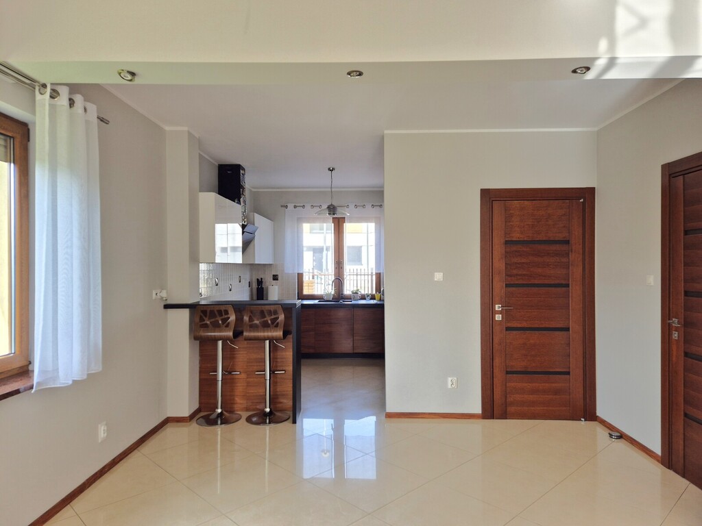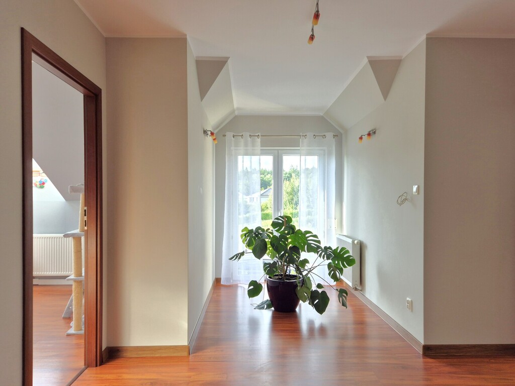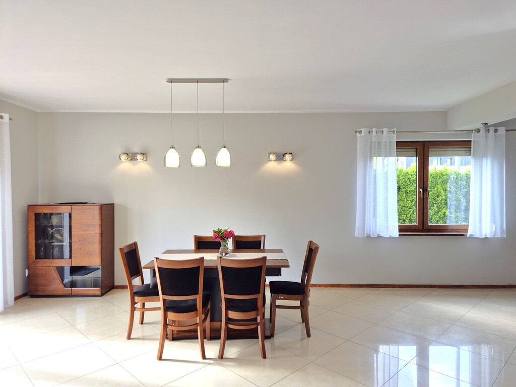 Okolica: Dom znajduje się w spokojnej okolicy na Warszewie, które składa się przede wszystkim ze strefy osiedli niskiej zabudowy — bliźniaki, domy jednorodzinne, kameralne bloki. Ta dzielnica często oceniana jest jako jedna z najbezpieczniejszych, najczystszych i najlepiej utrzymanych w Szczecinie. Dookoła wiele zielonych terenów spacerowych, Puszcza Wkrzańska i Gubałówka. Miejsce idealne dla rodzin z dziećmi – tuż obok domu mamy przystanek autobusowy linii 92 a kawałek dalej linii 87, co znacznie ułatwi dzieciom czy młodzieży korzystanie z komunikacji miejskiej. Przy ulicy Miłosza w odległości 1500m mieści się nowo otwarta szkoła podstawowa. W spacerowej odległości (1km) znajduje się sklep Biedronka, przychodnia, kawiarnia, piekarnia, apteka, szkoła jogi. W okolicy znajdziemy też kilka prywatnych przedszkoli.