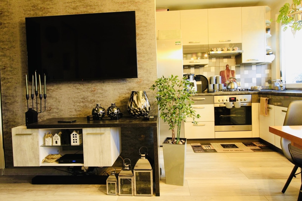 • Układ: pokój, otwarta kuchnia, przedpokój, toaleta, łazienka z prysznicem