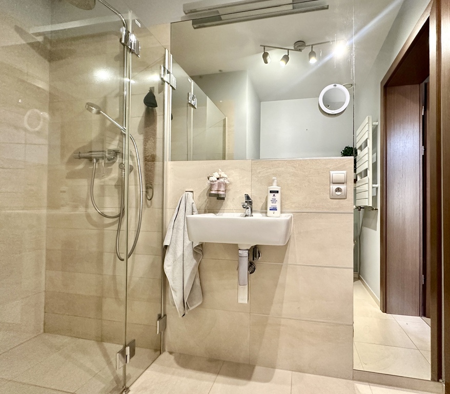 2 funkcjonalne łazienki, w tym piękny pokój kąpielowy z przygotowanym miejscem pod saunę — idealny do relaksu i regeneracji