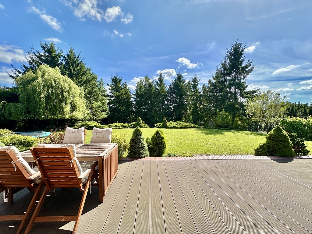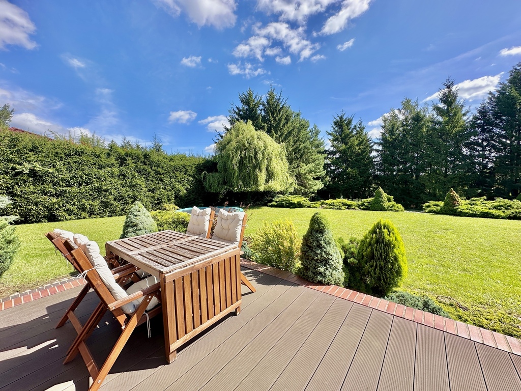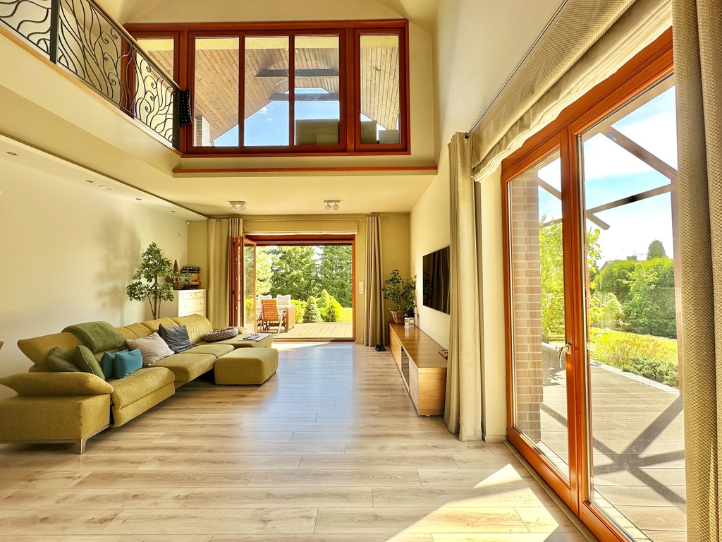 Marzysz o przestronnym, eleganckim domu, w którym połączono nowoczesne technologie z naturalnym pięknem? Szukasz miejsca, gdzie każdy dzień zaczyna się od widoku zieleni, a wieczory spędzasz przy ciepłym kominku? Ta oferta jest dla Ciebie!