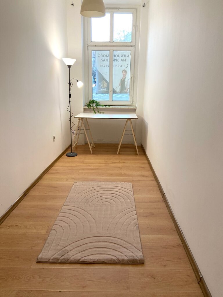 UKŁAD POMIESZCZEŃ• Pokój 1 (przy wejściu) – idealny na gabinet / pokój do pracy / pokój nastolatka