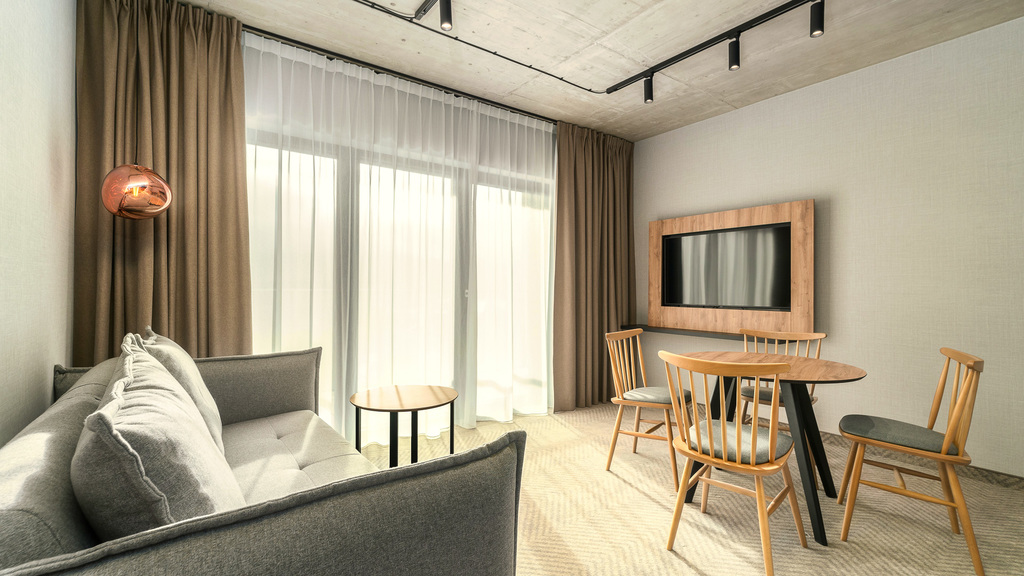 Apartament przestronny i funkcjonalny. Wykończony materiałami najwyższej jakości z dbałością o każdy szczegół, wyposażony w sprzęt najwyższej jakości.