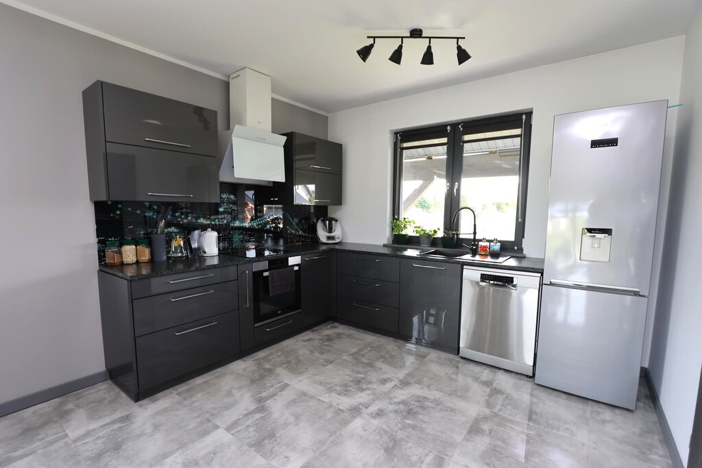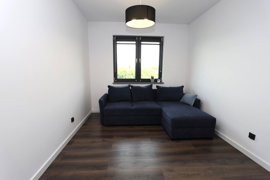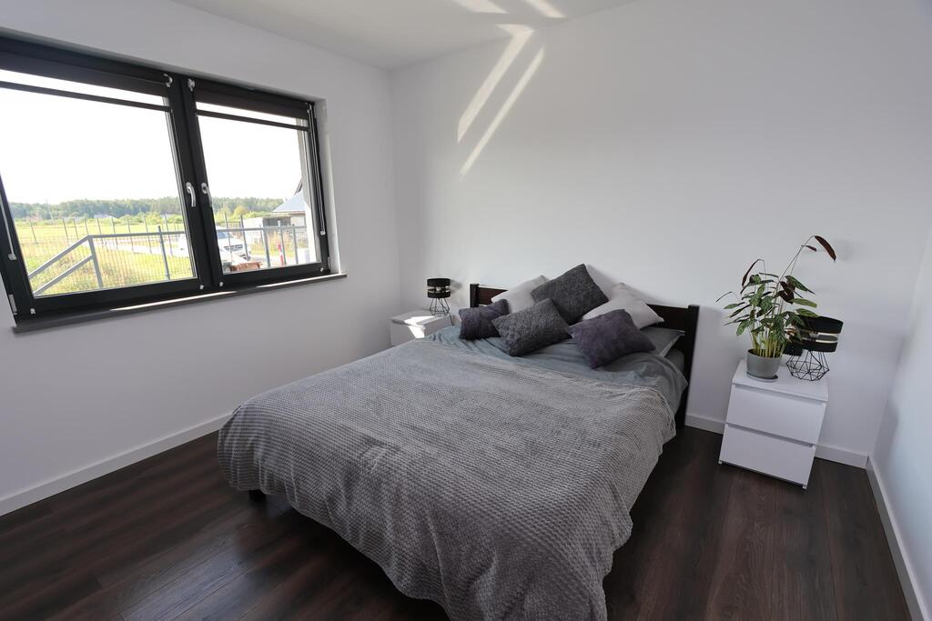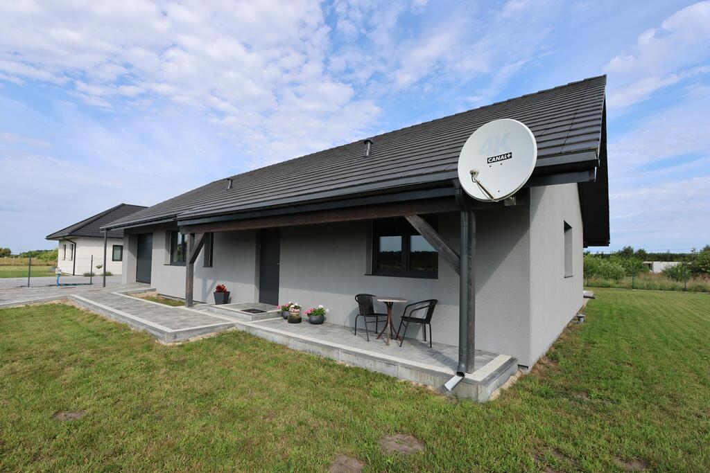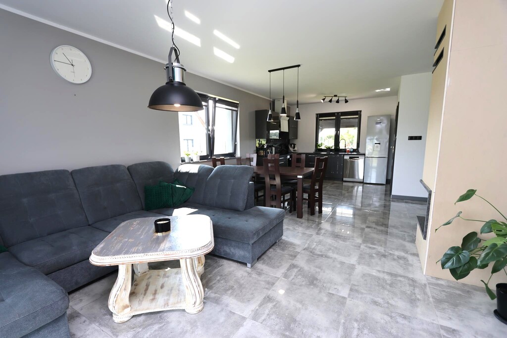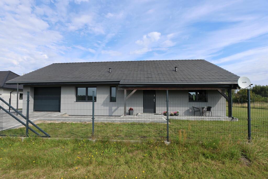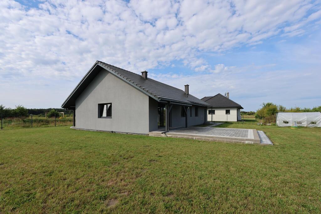 Dom parterowy o pow. użytkowej 109,80 m² (salon z aneksem kuchennym i jadalnią + 3 pokoje, 2 łazienki, garderoba), położony na osiedlu domów jednorodzinnych, w niedalekiej odległości od lasu. Dojazd drogą prywatną utwardzoną. To doskonała nieruchomość dla rodziny 2+2.