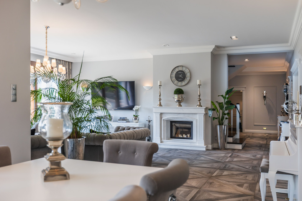 Wnętrze domu to połączenie komfortu, wysokiego standardu i przemyślanej funkcjonalności. Każdy element - od panoramicznych okien z widokiem na ogród, przez meble robione na zamówienie, po armaturę i dodatki od najlepszych światowych marek - został dobrany z dbałością o szczegóły i wygodę codziennego życia.