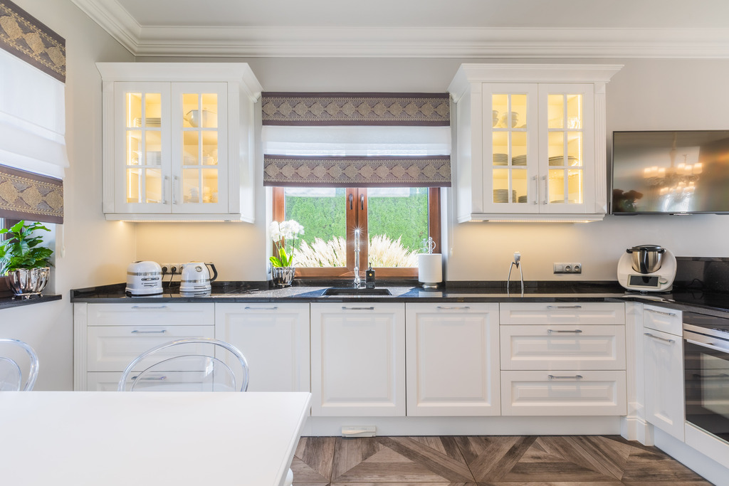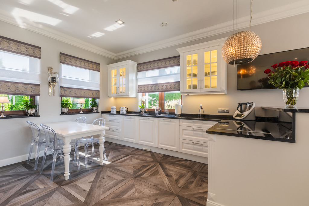 Autorskie meble i zabudowy stolarskie: kuchnia z granitowymi blatami, drzwi, stoły, szafy, komody, meble w łazienkach wykonane są pod wymiar na zamówienie według własnego projektu przez renomowaną pracownię stolarską. Meble tapicerowane pod zamówienie.