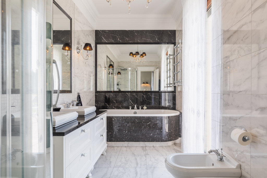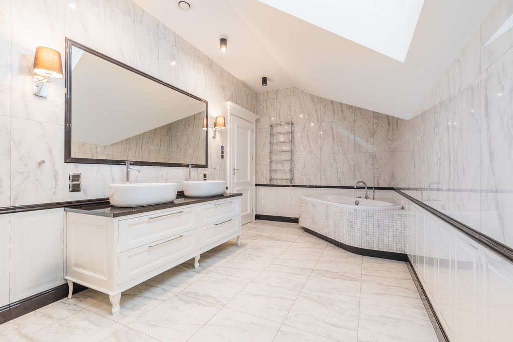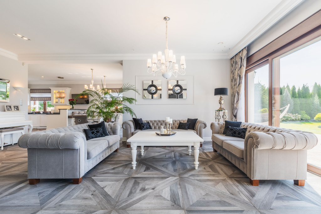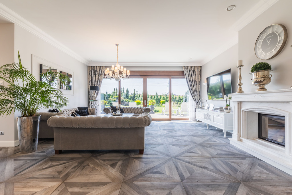 Parter domu włożony w całości gresami.