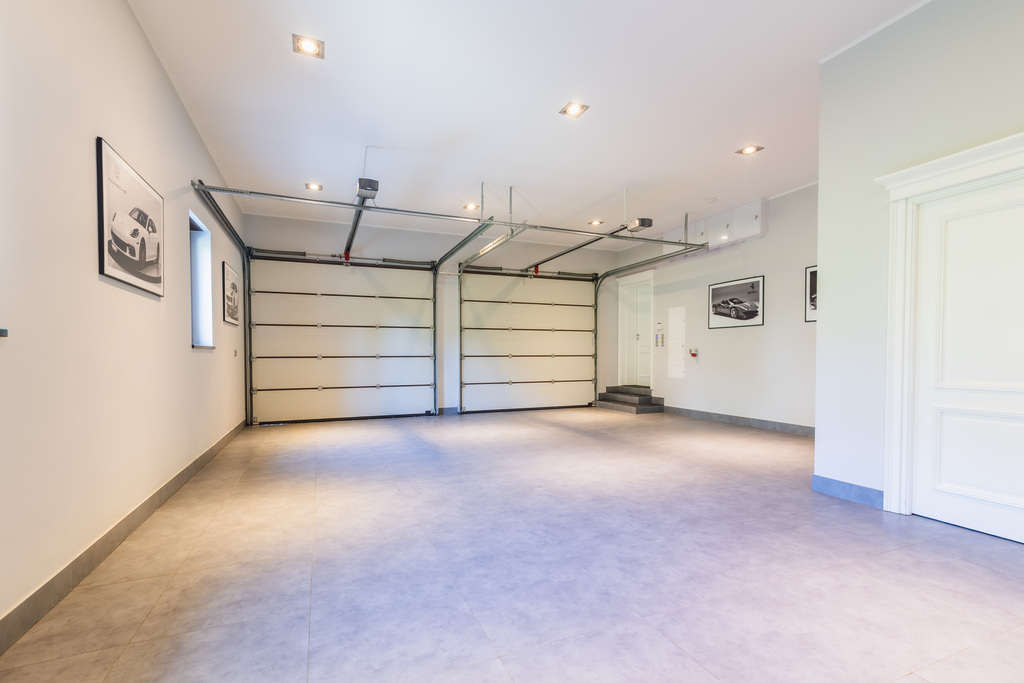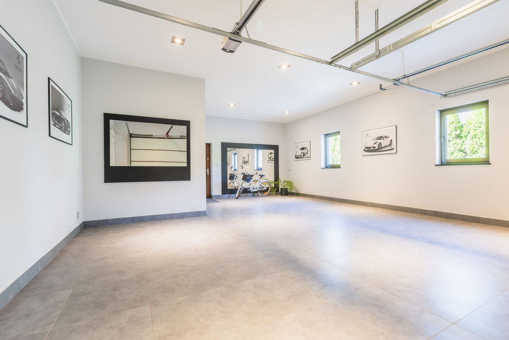 garaż na dwa duże auta i dwa quady z WC i podgrzewaną podłogą wyłożony gresami.