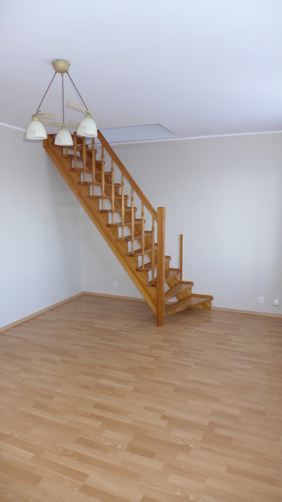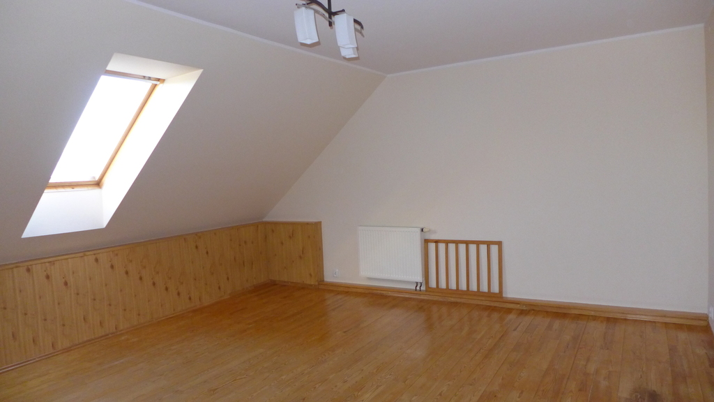 I poziom: dwa pokoje o powierzchni 20 i 10m2, z większego wyjście na taras o pow. 6m2. Na podłogach panele wysokiej jakości. Kuchnia 10m2-kuchenka elektryczna, płyta gazowa, zmywarka, okap, zabudowa kuchenna, pralka. Łazienka z wc w kaflach.