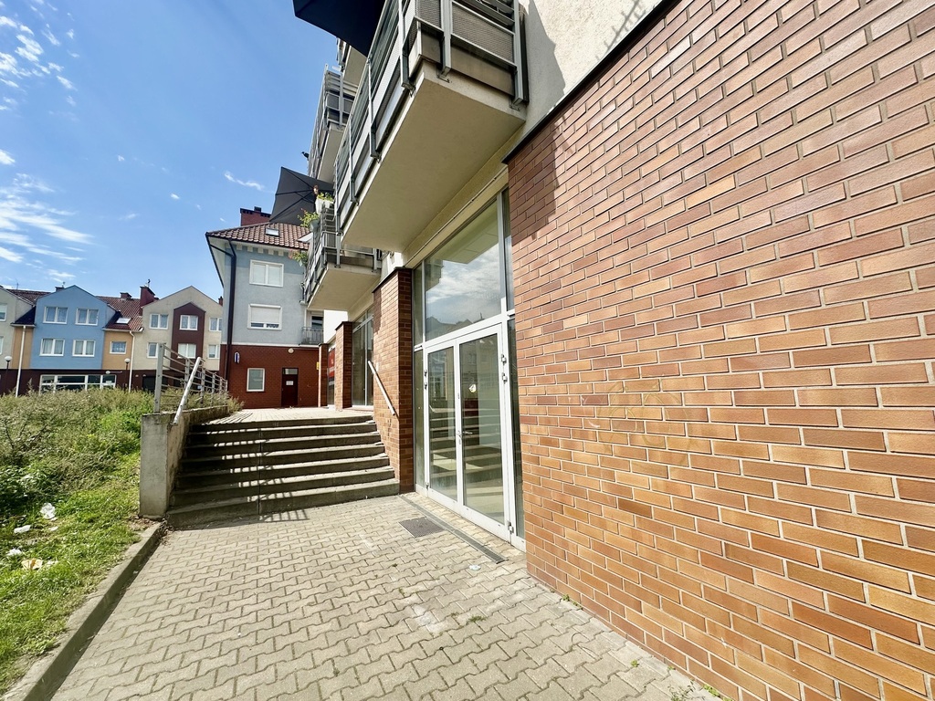 Atrakcyjny lokal użytkowy o powierzchni 79,84 m², położony na parterze nowoczesnego budynku z 2012 roku, zlokalizowanego w ścisłym centrum Stargardu.