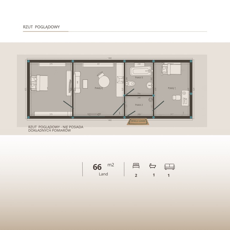 - Przestronnego salonu z aneksem kuchennym, doskonałego do wypoczynku i spotkań z rodziną oraz przyjaciółmi.