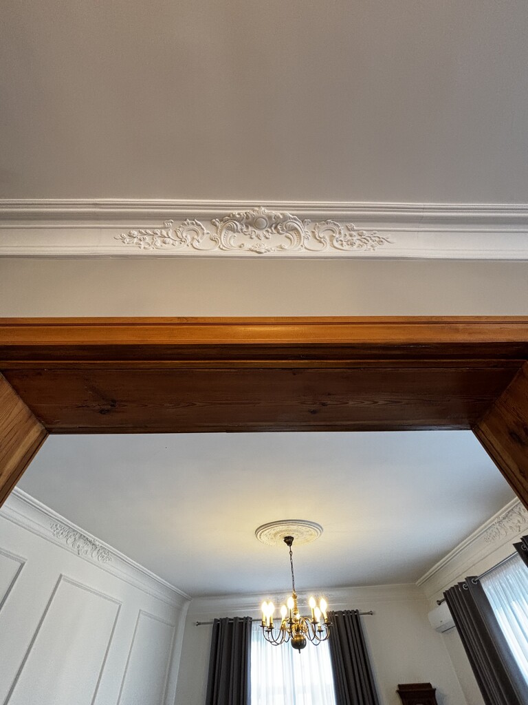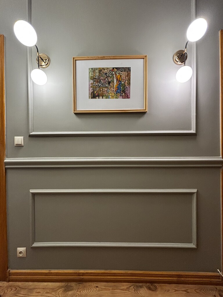 Na podłodze piękna, odrestaurowana deska drewniana. Ściany wygładzone i pomalowane. Na ścianach i suficie piękna sztukateria. W dwóch pokojach zostały zachowane oryginalna kaflowe piece, a także unokatowa lampa naftowa. Została zachowana oryginalna, odnowiona drewniana stolarka drzwiowa. Okna zostały wymienione 3 szybowe PCV.