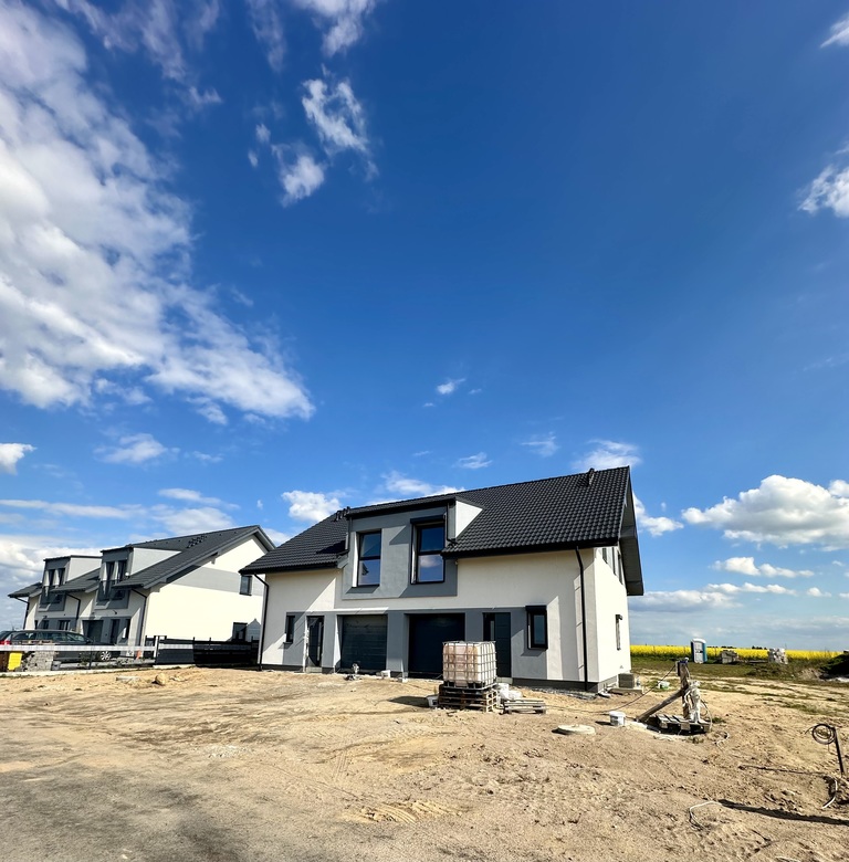 Nieruchomość oddawana w stanie pod klucz. Ściany gładzone malowane, łazienki z armaturą w glazurze i terakocie, podłogi winylowe, stolarka drzwiowa, brama garażowa na pilota, schody drewniane, biały montaż - wszytko w nowoczesnym stylu materiałami wysokiej jakości.