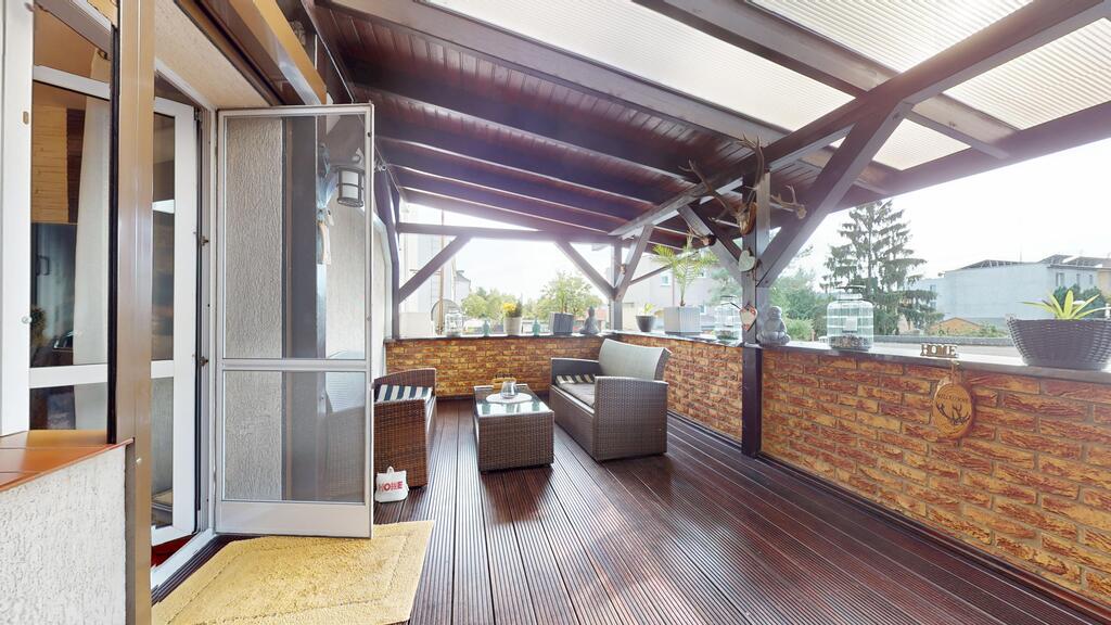 Do domu przynależą 3 murowane garaże, z możliwością adaptacji – obecny taras można przedłużyć, wykorzystując powierzchnię dwóch z nich.