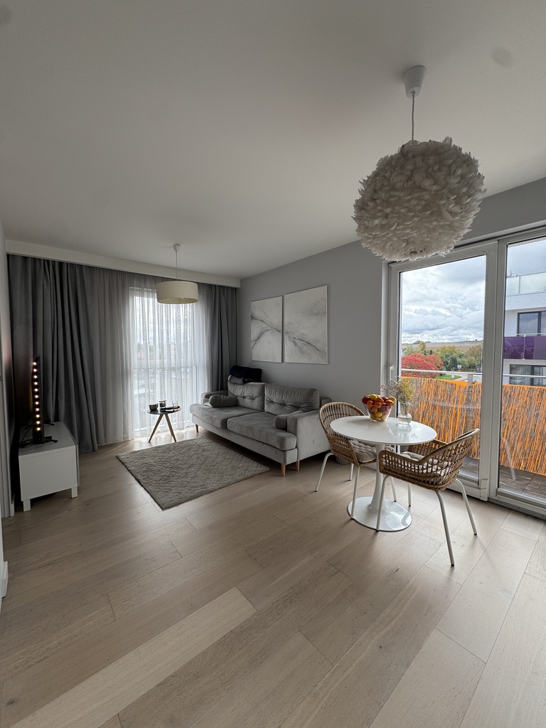 - przestronny salon z wyjściem na balkon oraz rozkładaną kanapą