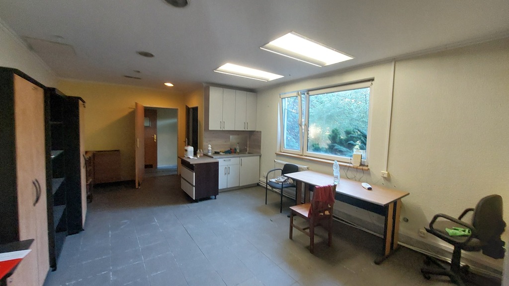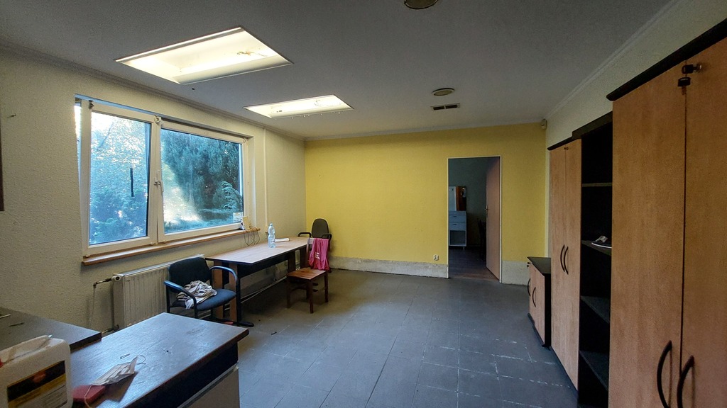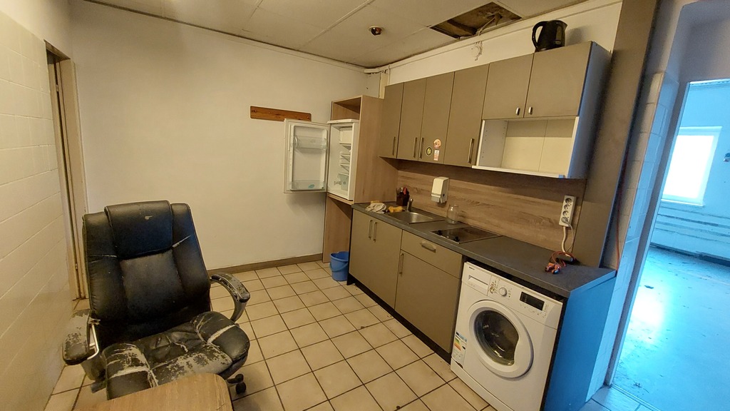 Część biurowa wymaga remontu, była wykorzystywana jako miejsce zamieszkania dla pracowników.