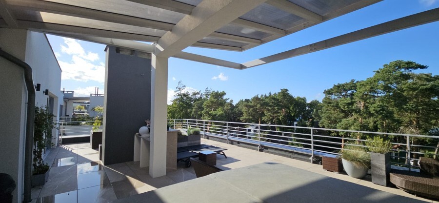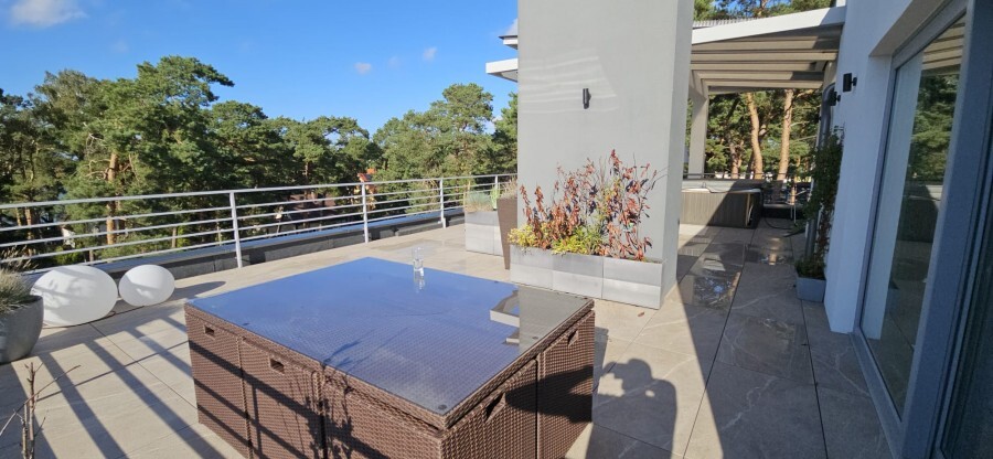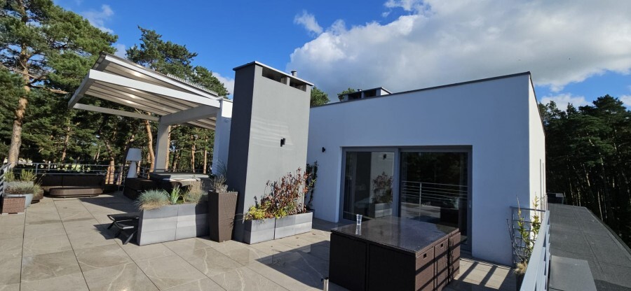 -ogromny taras ok. 80 m² z jacuzzi i widokiem na nadmorski las