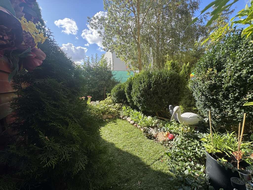 Ładnie zagospodarowany ogródek z bezpośrednim wyjściem z balkonu. W ogrodzie mała altanka z miejscem do odpoczynku.
