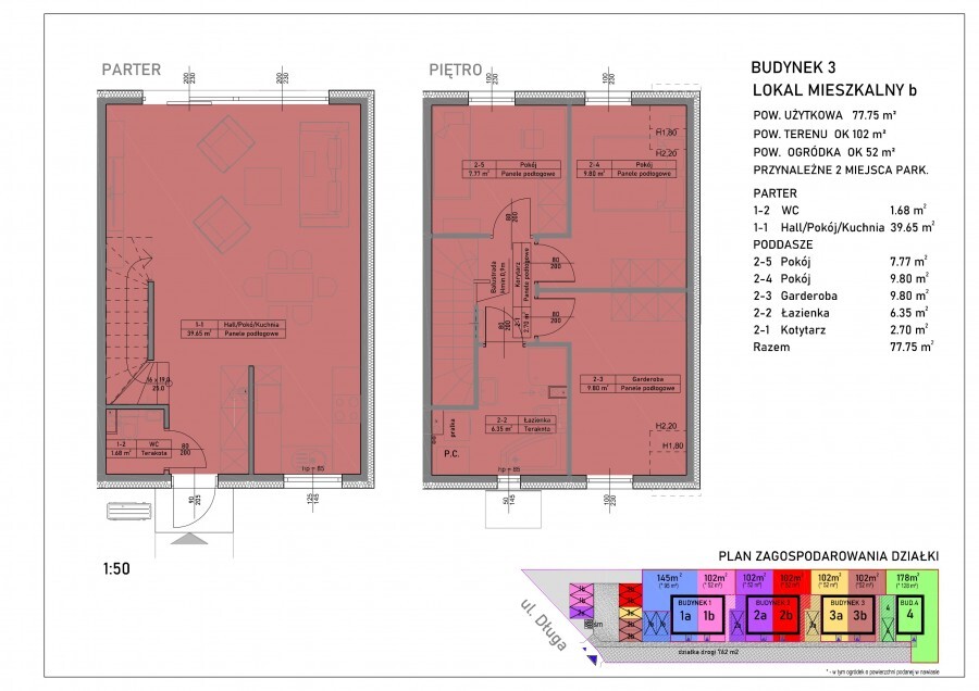 - działka: ok. 102 m², w tym ogród ok. 52 m²