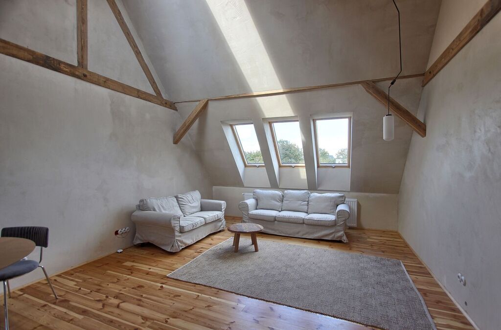 Mieszkanie mieści się na poddaszu, wcześniej nie było wynajmowane/zamieszkane. Adaptację mieszkania przeprowadzali właściciele. Bardzo dobry stan techniczny, porządna izolacja. Nowa pralka, kuchenka.