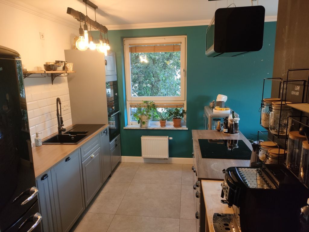 Zabudowana meblami na wymiar ze sprzętem AGD.W pokojach na podłodze deska drewniana,kuchnia i łazienka w terakocie i glazurze.Okna PCV,ściany gładzone malowane.