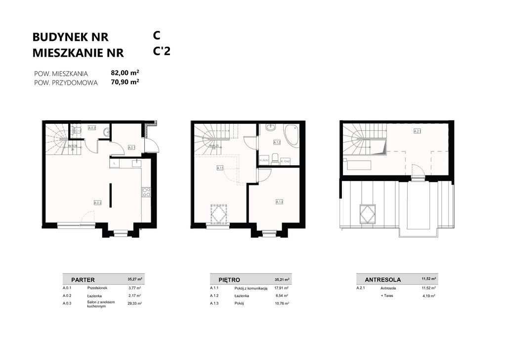 Mieszkanie o powierzchni 82 m2 składa się z 3 poziomów: