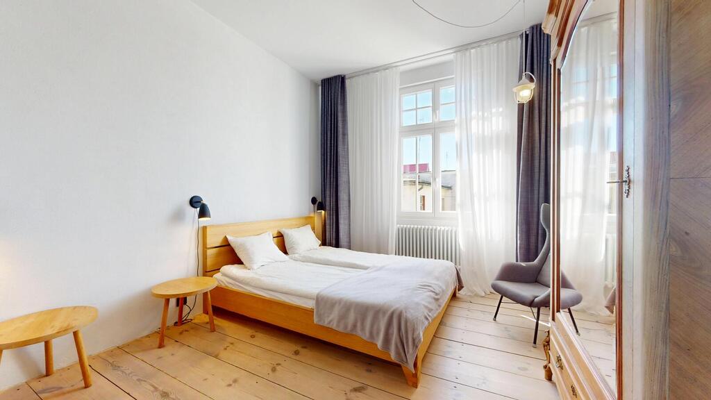 Apartament znajduje się na 1 piętrze budynku z 1926 roku, przy ul. Ludowej, w odległości około 300 m od wejścia na plażę. W pobliżu znajdują się liczne restauracje, kawiarnie, sklepy.