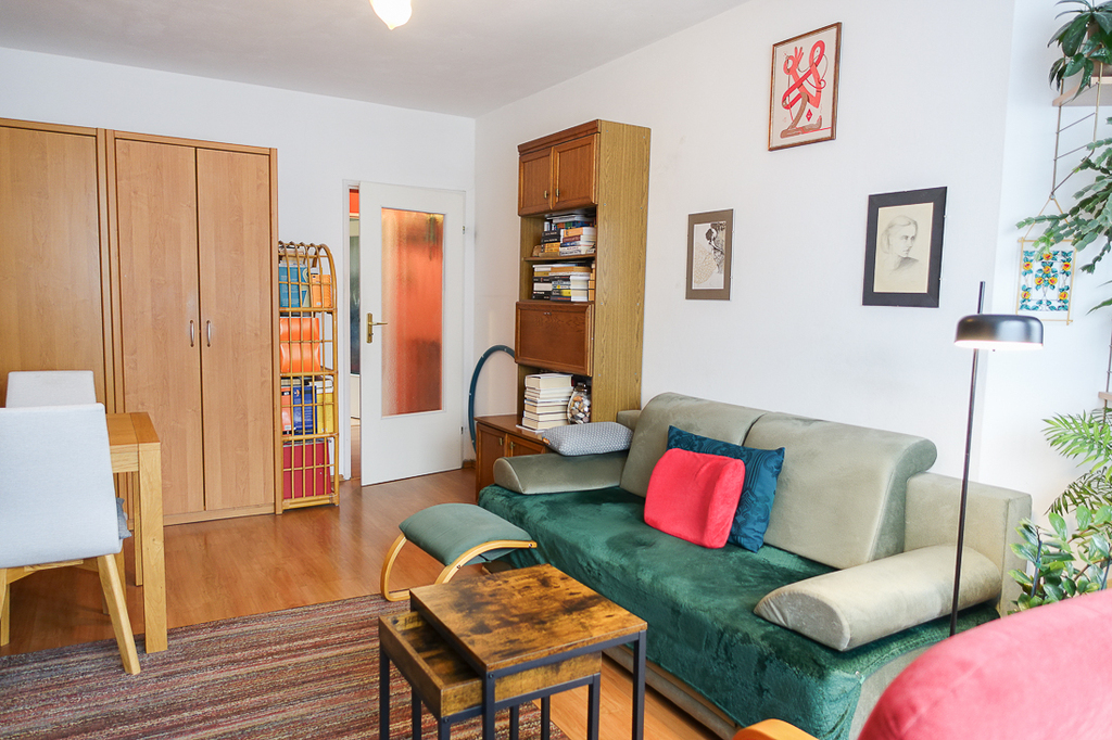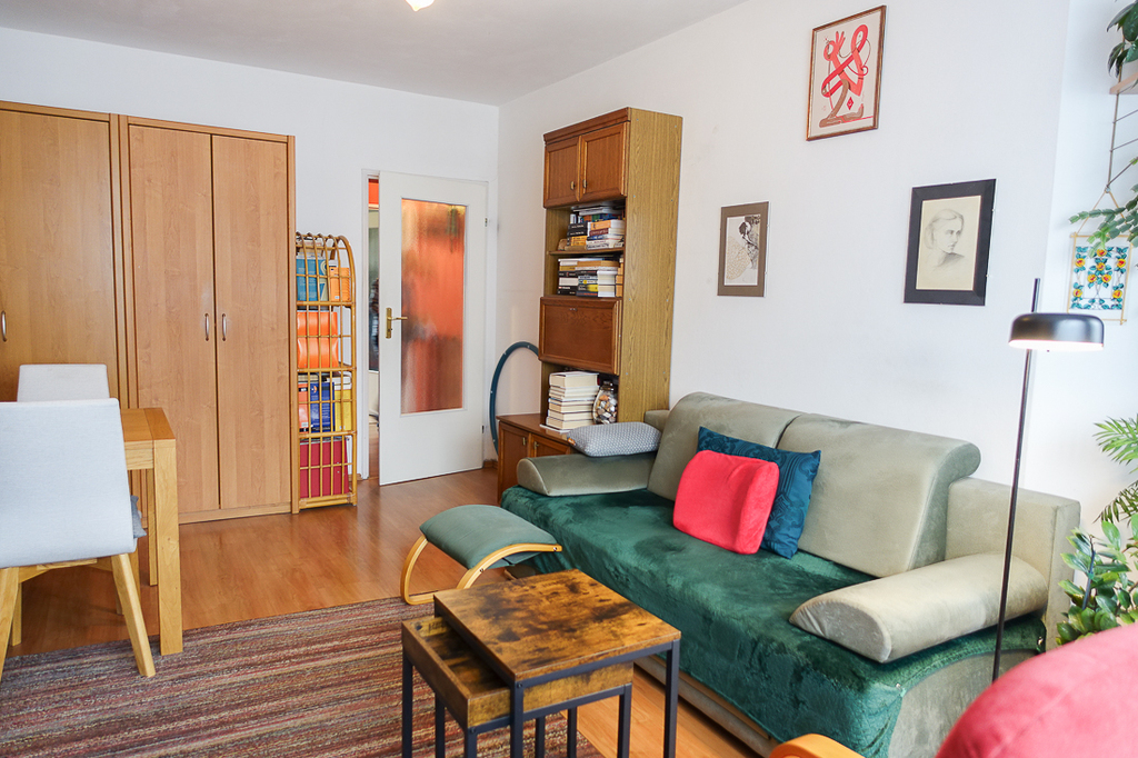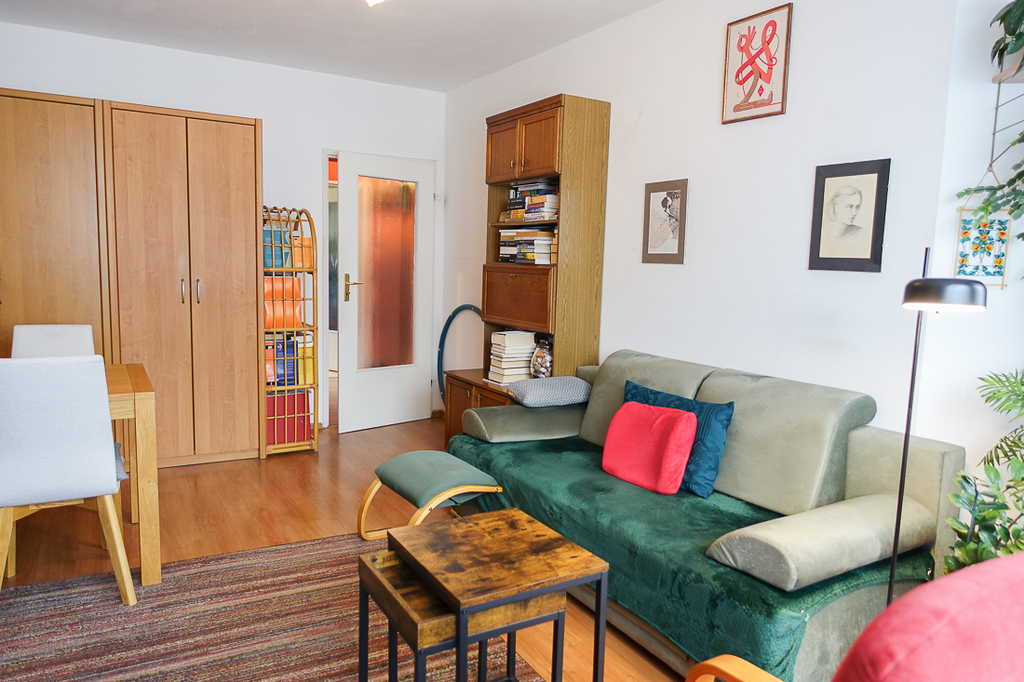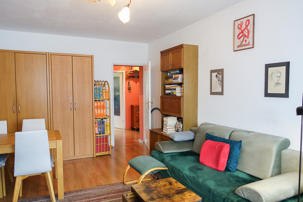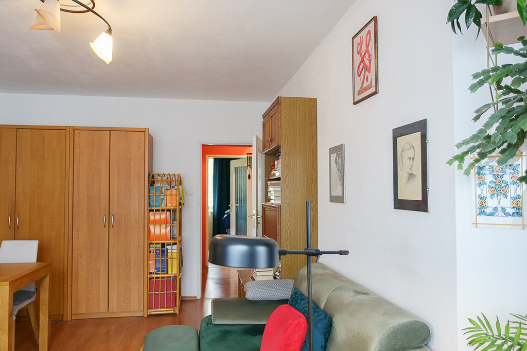Pokój dzienny o powierzchni 20,6 m2 z wyjściem na balkon od strony wschodniej o powierzchni 9 m2.