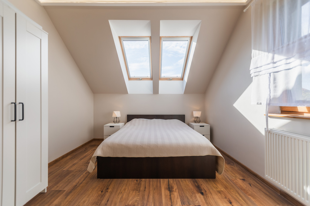 3 sypialnie z zabudowanymi szafami na wymiar oraz łazienka.