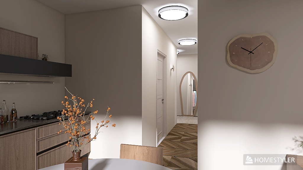* w obecnym układzie mamy ustawny korytarz z szafą w zabudowie, 3 osobne pokoje, dużą kuchnię, łazienkę i osobno wc, zabudowany balkon