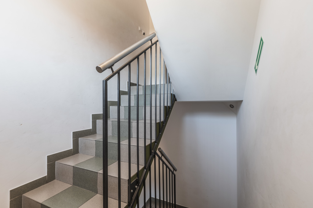 Wszystkie kondygnacje łączy osobna klatka schodowa, a każda kondygnacja jest zamykana drzwiami.