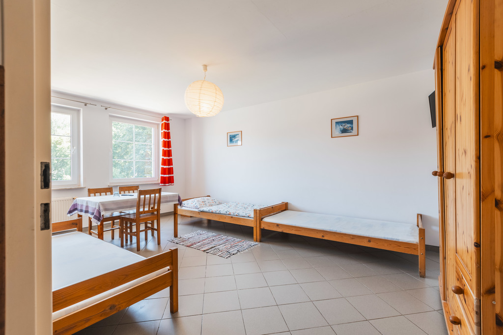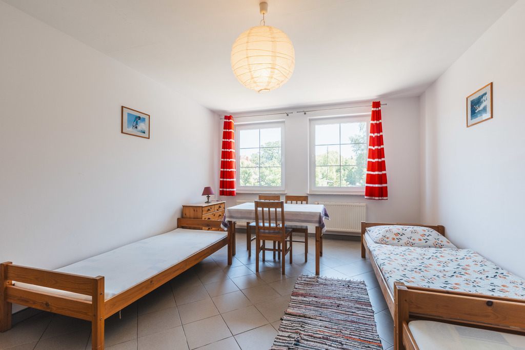 Pierwsze piętro (ok. 100 m2) to trzy, czteroosobowe pokoje na wynajem. Jeden z nich zawiera prywatną łazienką, na korytarzu mamy drugą łazienkę i dodatkowo dużą kuchnię z jadalnią.
