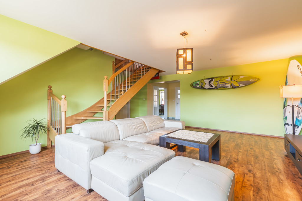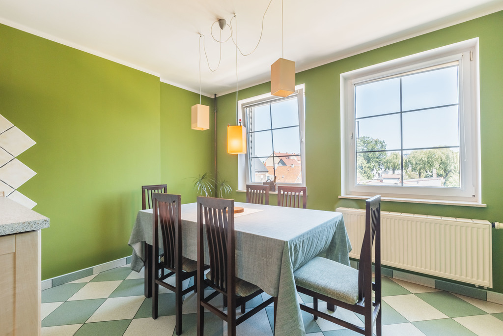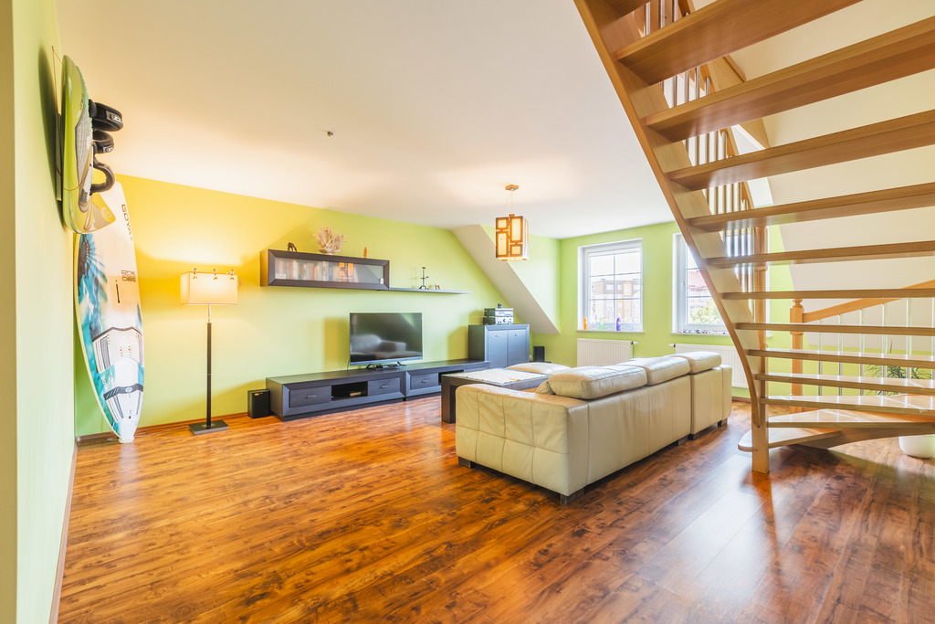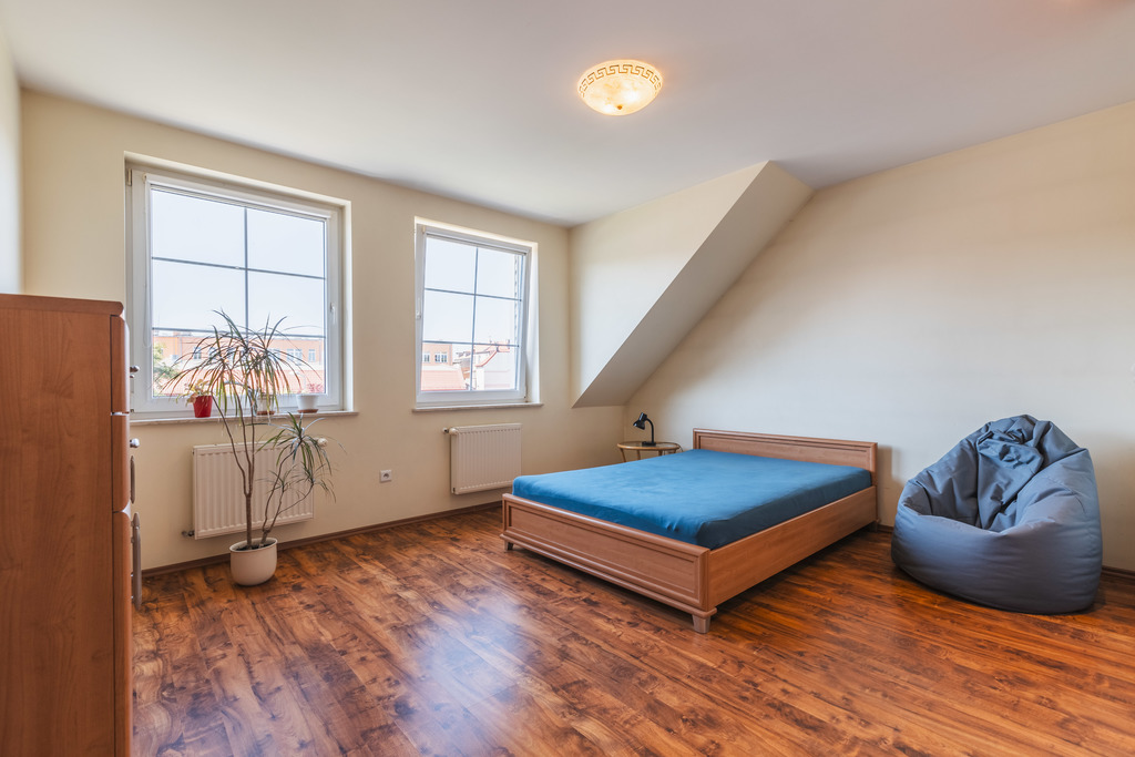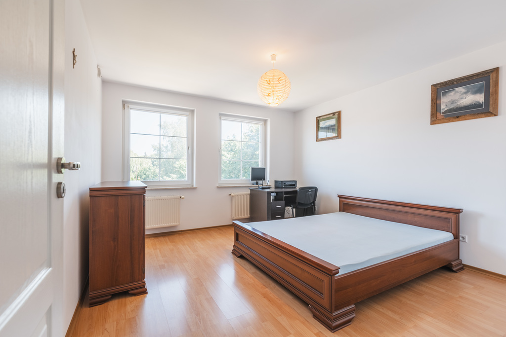 Drugie piętro i poddasze (ponad 100 m2) to osobne mieszkanie z trzema sypialniami, przestronnym salonem, kuchnią z jadalnią oraz łazienką.