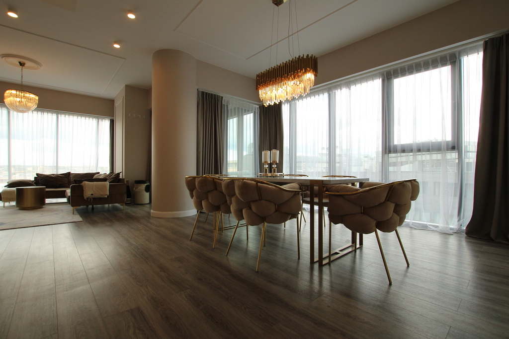 Ponad to, mieszkanie wyposażone jest w klimatyzację, ogrzewanie podłogowe, elektrycznie sterowane zasłony.