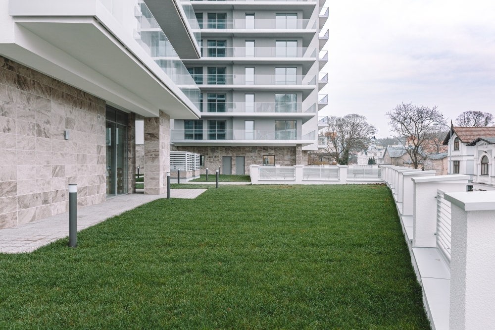 Apartament w Międzyzdrojach z widokiem bocznym na morze, zaledwie 100m od plaży. Apartament oddany do użytku w 2020r. Apartamentowiec, w którym się znajduje, to nowoczesny budynek bez barier, wyposażony w dwie windy przystosowane dla osób niepełnosprawnych, portiernię, halę garażową oraz lokale handlowo-usługowe w parterze.