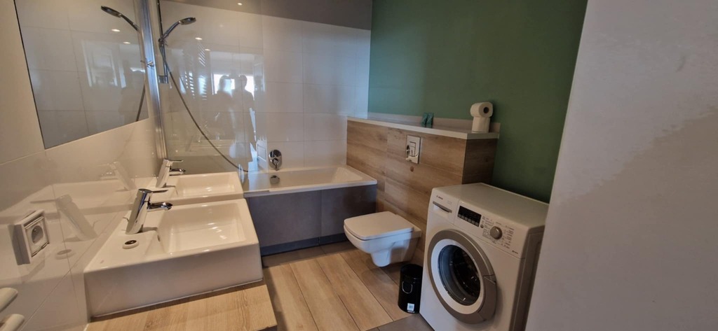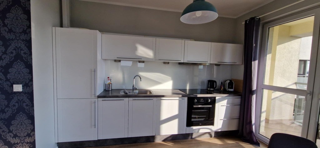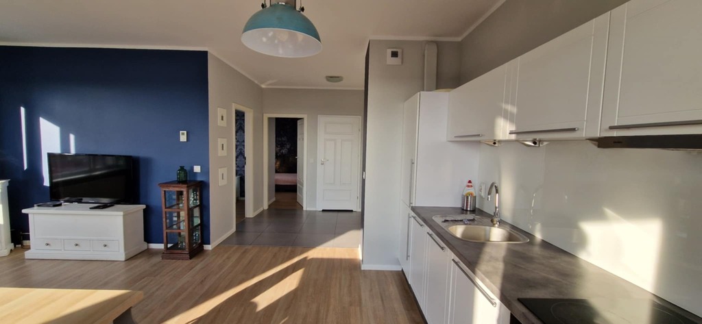Mieszkanie składa się z salonu z aneksem kuchennym, dwóch sypialni, łazienki z wanną oraz przedpokoju. Układ mieszkania daje możliwość wydzielenia czwartego pokoju, co czyni nieruchomość niezwykle funkcjonalną i dopasowaną do różnych potrzeb – zarówno dla rodzin z dziećmi, jak i par szukających komfortowej przestrzeni do życia.