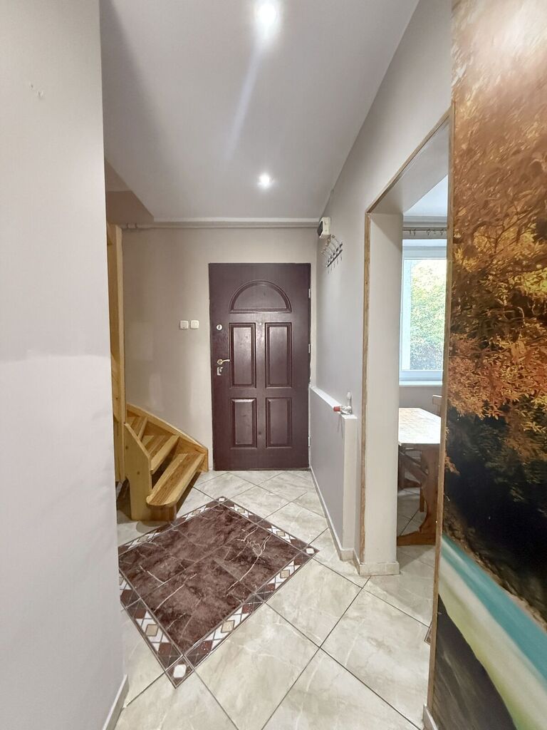 Dwupoziomowe, czteropokojowe mieszkanie zlokalizowane na parterze niskiego budynku z cegły, w spokojnym i cichym miejscu.