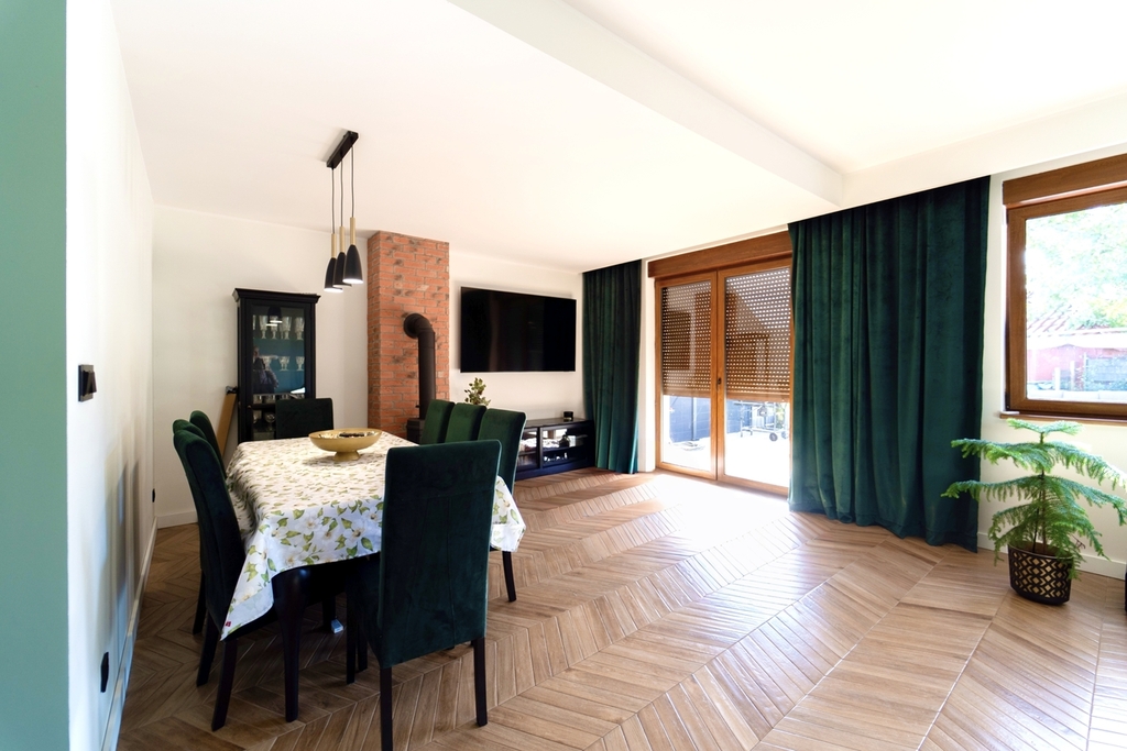 - jasny salon z wyjściem na ogród,