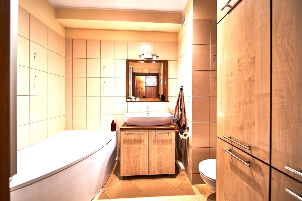 Funkcjonalna łazienka (ok 4,5 m2)z miejscem na pralkę oraz suszarkę w zabudowie