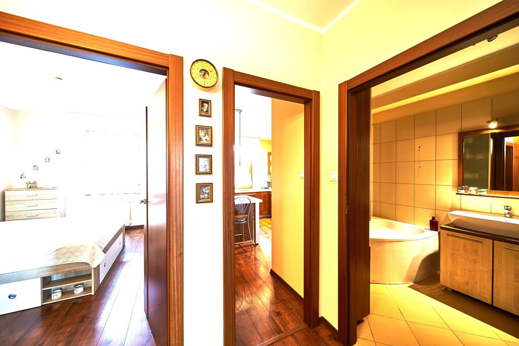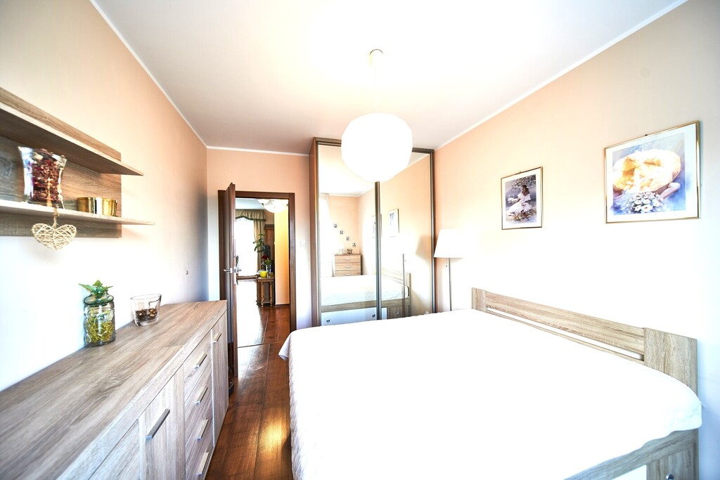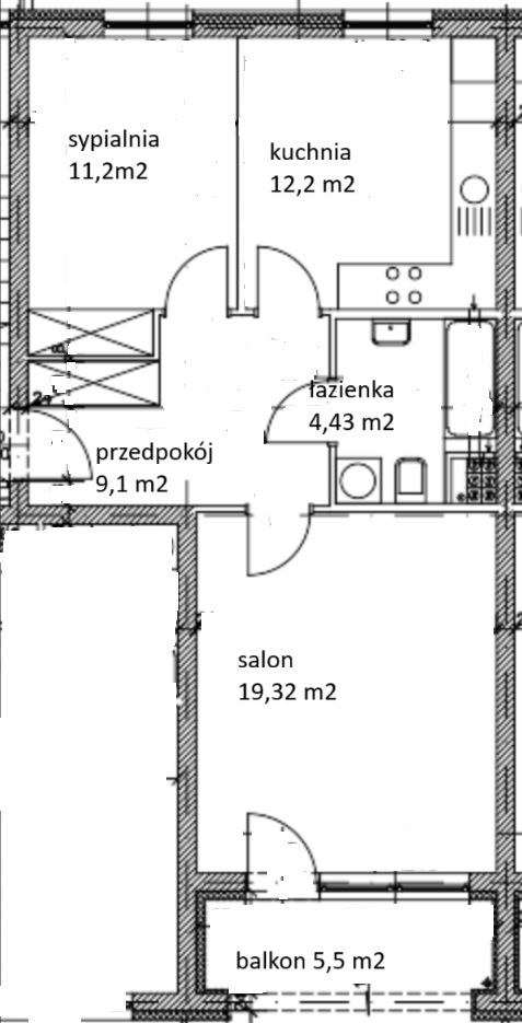 Rozkład mieszkania pozwala na uzyskanie 2 sypialni, po przeniesieniu aneksu kuchennego do salonu.