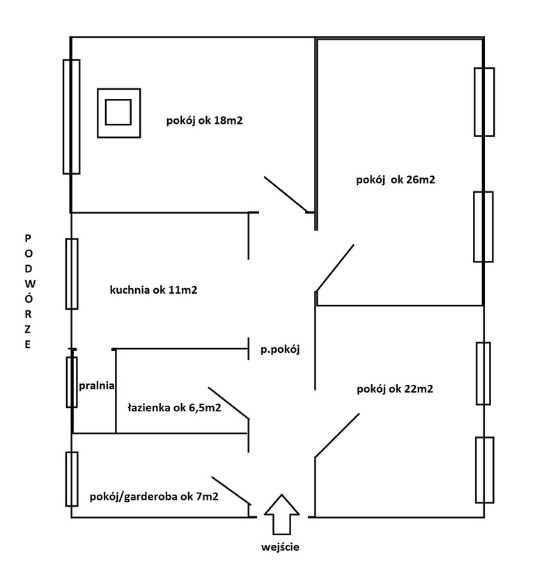 Mamy przyjemność przedstawić Państwu piękne mieszkanie, na Wałach Chrobrego! Nieruchomość mieści się na parterze wyremontowanej i ocieplonej kamienicy, nieopodal pomnika Adama Mickiewicza. Na tyłach budynku znajduje się zamknięte, zagospodarowane podwórze, gdzie mieszkańcy mają możliwość parkowania samochodów. Do lokalu przynależy jedno miejsce postojowe (parking za bramą).