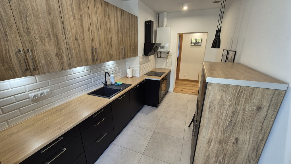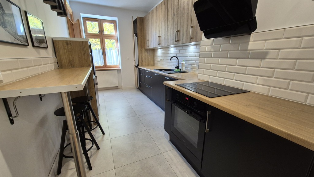 * kuchnia (ok. 11m2) wyposażonej w zmywarkę, lodówkę w zabudowie, płytę indukcyjną i piekarnik;