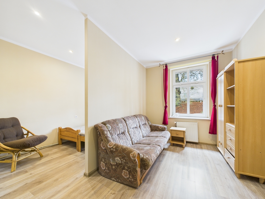 - Jasny, przestronny salon ( obecnie przedzielony ścianką z regipsu )
