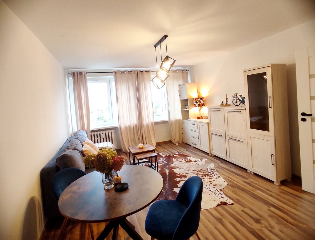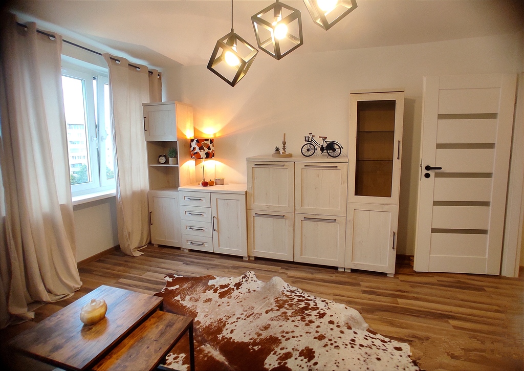 • Przestronny pokój dzienny z miejscem do spania, pracy i wypoczynku