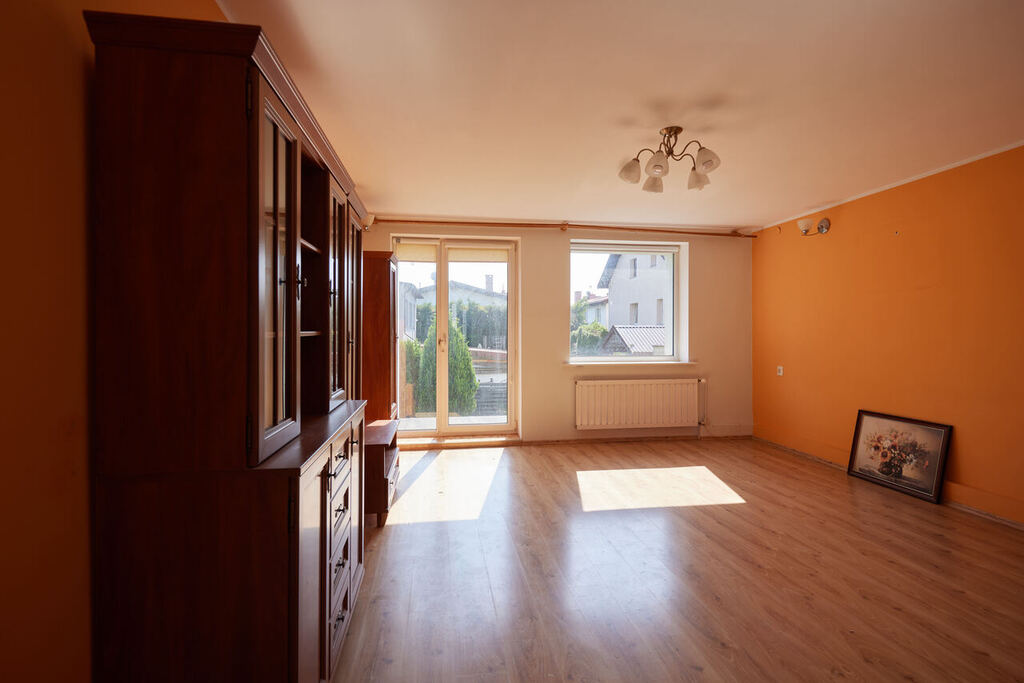 Budynek wyposażony jest w dwa niezależne systemy ogrzewania gazowego – osobne piece obsługują przyziemie z parterem oraz piętro. Dach płaski, stan techniczny nieruchomości – dobry, do remontu lub modernizacji według własnych potrzeb.