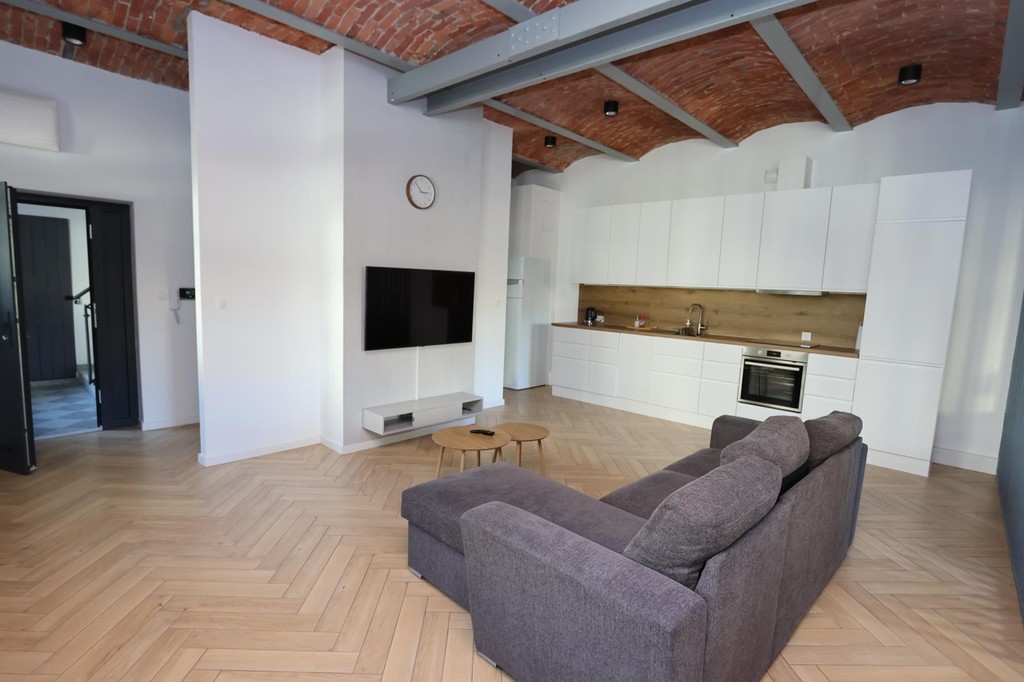 Lokal został kompleksowo wyremontowany (nowe instalacje wod-kan, elektryczna, podłogi, ściany), zaaranżowany wg indywidualnego projektu i jest wyposażony w meble oraz sprzęt AGD.